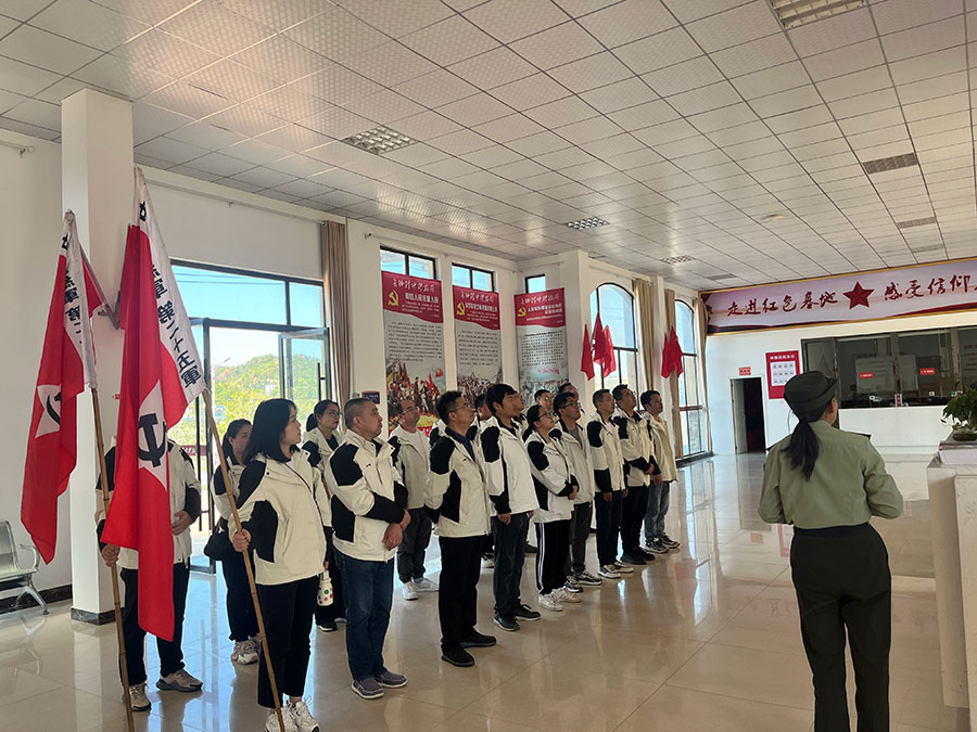 2024年10月31日湖北万钧检测的中层以上管理人员全员参加了为期两天的英山长征精神体验园党建活动,进入长征精神体验园,重走红二十五军长征路,沿途听讲解、诵经典、看图文、唱红歌,进行战前动员,模拟战斗体验,经过将军路,了解“百将之师”的英雄人物,在红军之家广场组织拉歌比赛、运粮比赛,感受激情岁月,亲身体验袁家沟口歼灭战,到达大别山革命历史文化陈列馆广场,重温入党誓词,参观陈列馆,听讲解,了解大别山革命斗争史,并在陈列馆报告厅听党课。通过两天的集中学习,深刻体会到了“坚定信念,不怕牺牲,独立自主,顾全大局,依靠人民”的长征精神,团建真开心!希望工作能全力以赴!感恩这次的拓展训练活动,让我们时时刻刻不忘初心,牢记使命!让我们体会到了责任和担当,勇气和团结,独立自主,顾全大局的长征精神,让我们重新认识了彼此感悟团队的无穷力量。