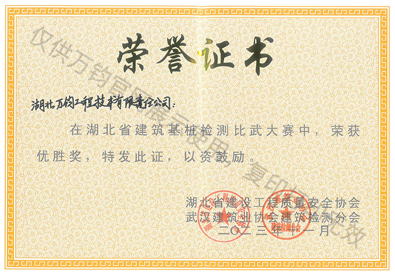 湖北省建筑基桩检测比赛优胜奖