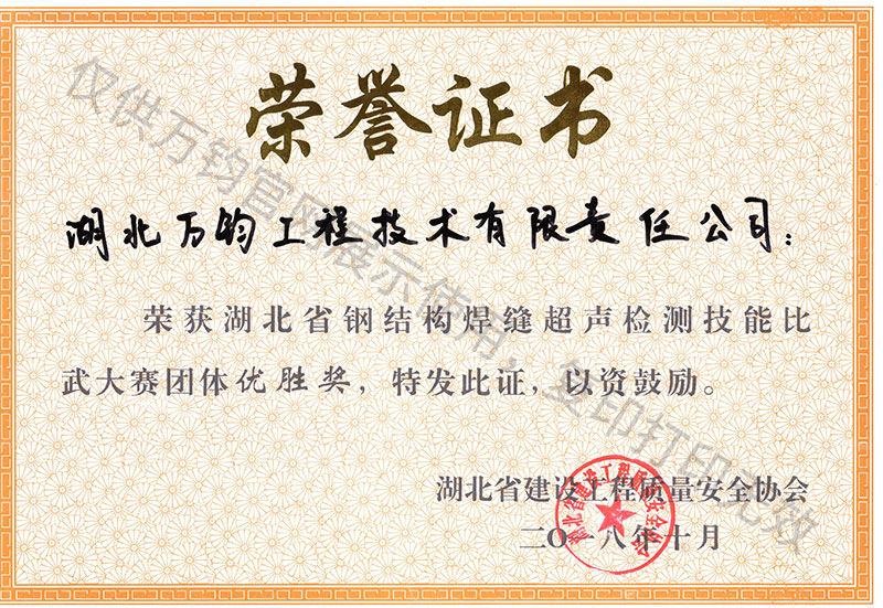 湖北钢结构焊缝超声检测技能大赛团体优胜奖